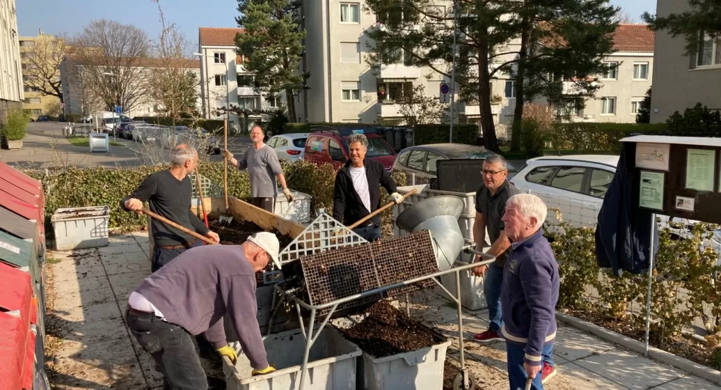 Im Frühling ist in den Kompostanlagen der FGZ Erntezeit, das Sieben des verrotteten Materials steht bevor. Auch dieses Jahr wird in verschiedenen Etappen der Reifekompost in einer «Teilete» an die Leute, die im Quartier wohnen abgegeben.