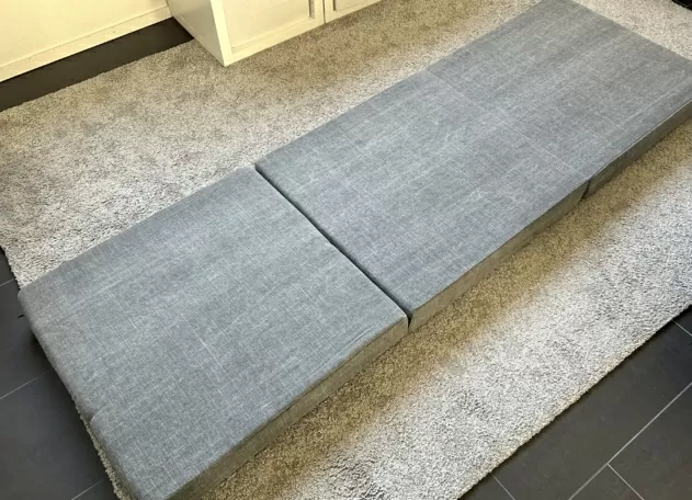 3-teilige, faltbare Matratze von Biber.ch. Kaum gebraucht und wie neu (Kaufpreis 285.-). Als Gästebett, aber auch als vergnügliche Spielwiese für Kinder. Sie ist schnell aufgestellt und wieder verräumt. Sie ist leicht und der Bezug waschbar.