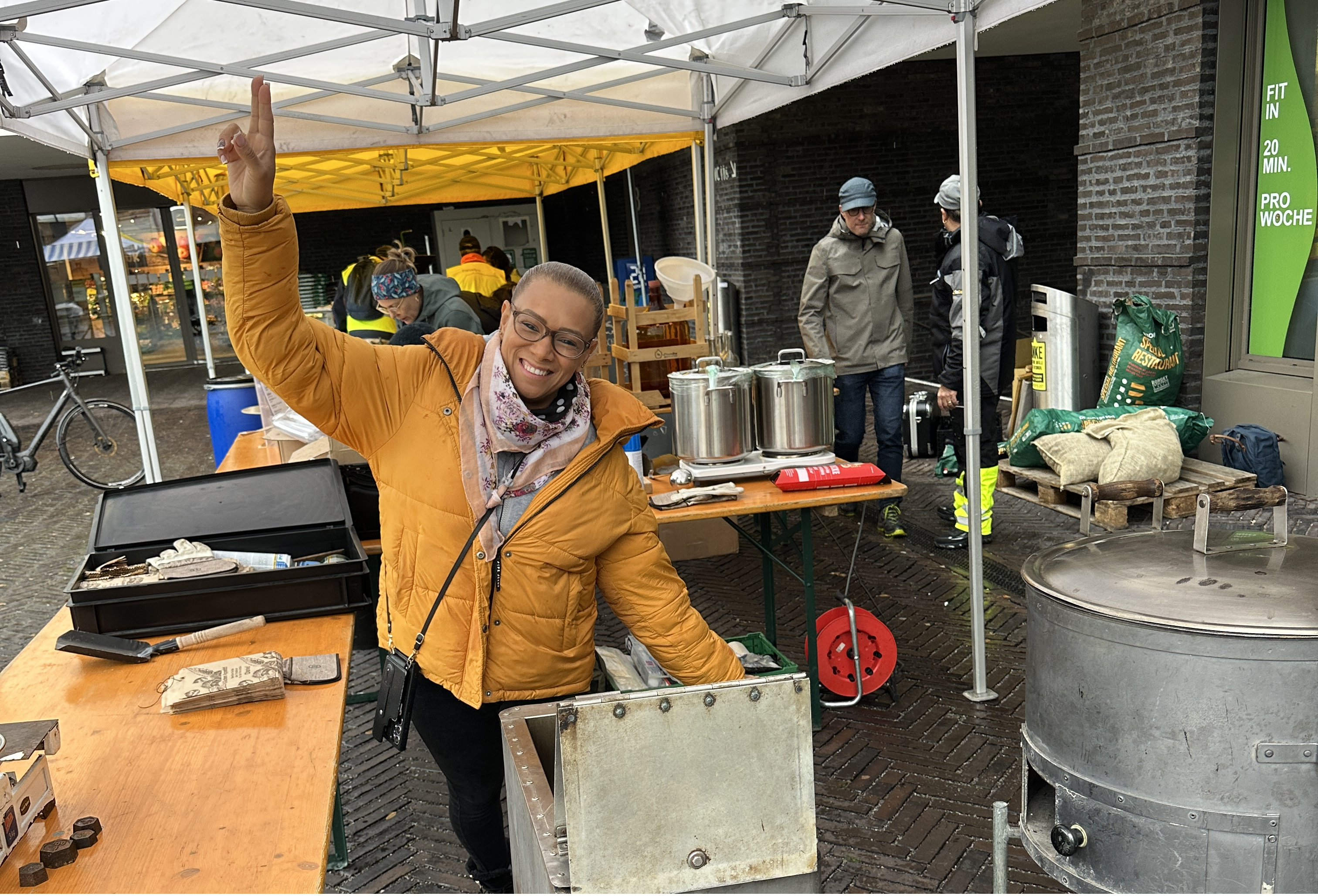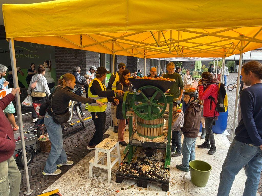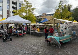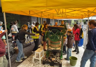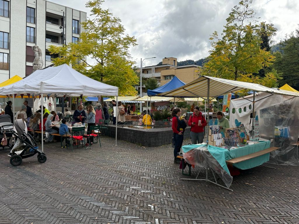 Bevor um 9.00 Uhr die ersten Marktstände von ihren Betreibern in Empfang genommen werden, gilt es, die Zelte, Bänke, Tische und Stände aufzubauen. Gegen 10.00 Uhr sind sechzehn Marktständen parat für die Kundschaft, an der Mostpresse purzeln die ersten Äpfel in den Trichter, am Marroni-Stand wird die Holzkohle angefeuert und das Bastelzelt ist bereit. Gegen Mittag klart das Wetter auf, der Wocheneinkauf ist erledigt und der Herbstmarkt füllt sich nicht nur mit Drehorgel-Musik, sondern auch mit jungen und junggebliebenen Quartier-Bewohnern.