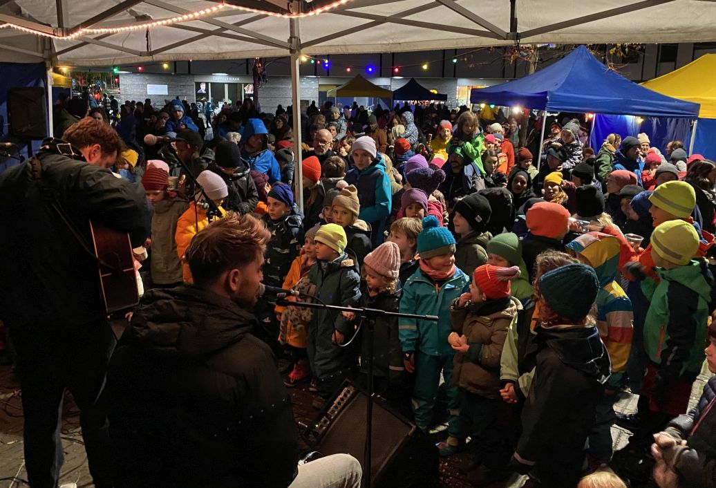 Auf dem Friesenbergplatz gab es dann einen Festbetrieb: An die Kinder wurden Wienerli mit Semmeli abgegeben, Glühwein und Punsch wärmten die Erwachsenen. Zu Essen gab es ausserdem Cervelat, Kalbsbratwurt vom Friesenberg Metzger und die berühmte Kürbis-Suppe von Ursi.